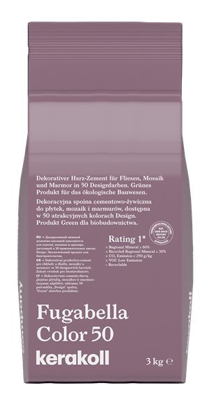 Fugabella® Color jest rewolucyjną, hybrydową spoiną dekoracyjną do wszelkich powierzchni z gresu, mozaik i kamieni naturalnych. Fugabella® Color charakteryzuje się hydrofobowością, niezwykle niską chłonnością wody, wysoką twardością powierzchni, podwyższoną odpornością na najczęściej spotykane substancje kwasowe i całkowitą jednorodnością koloru.