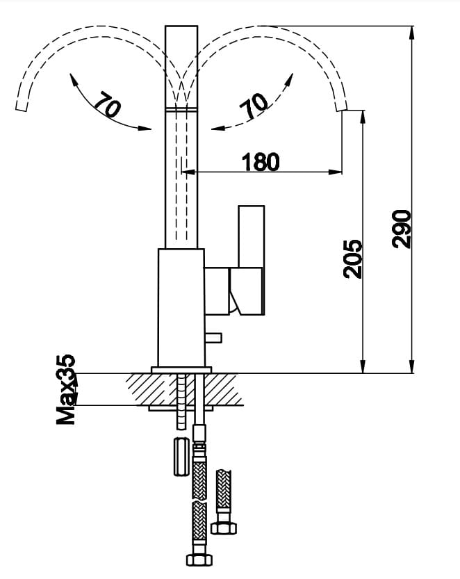 Kohlman DEXAME 1-otworowa bateria kuchenna z obrotową wylewką QB140D