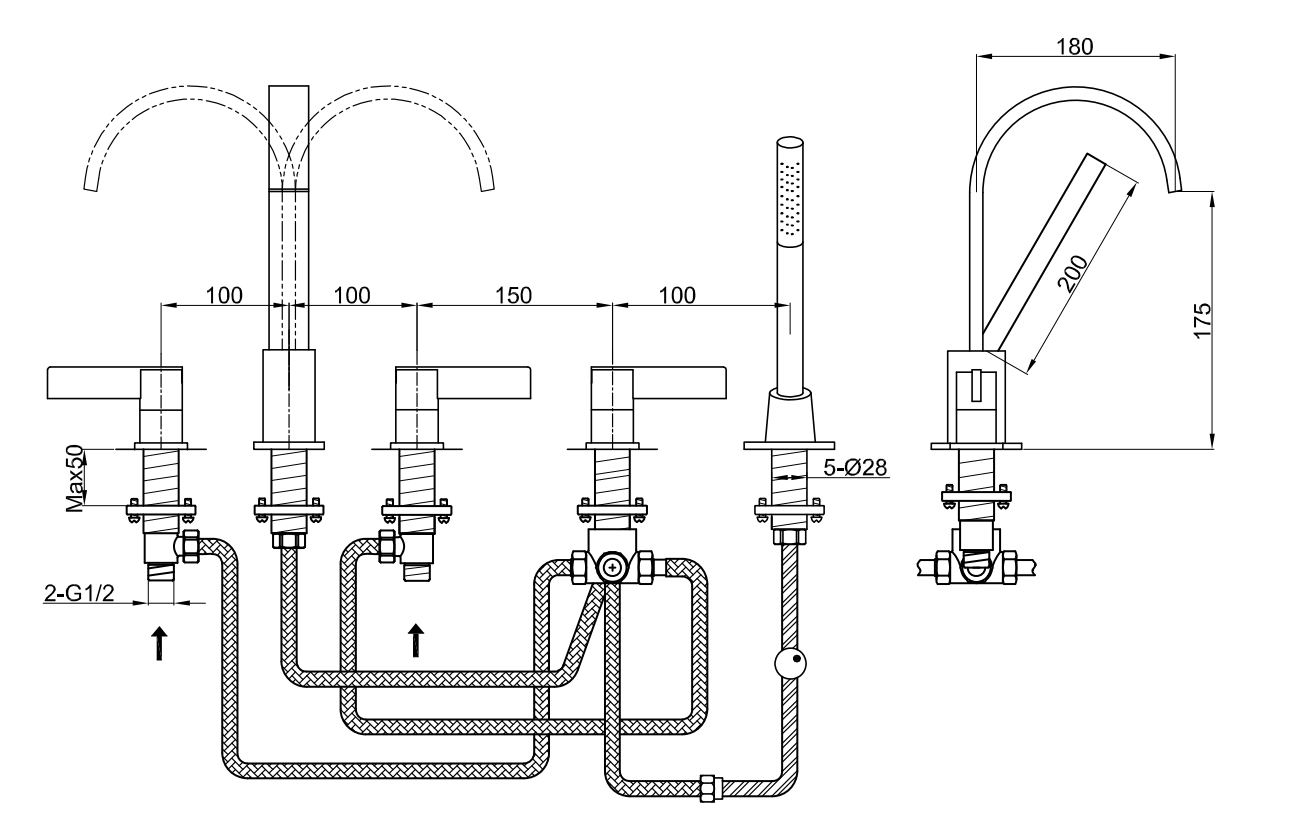 Kohlman DEXAME bateria wannowa 4 otworowa QB242D