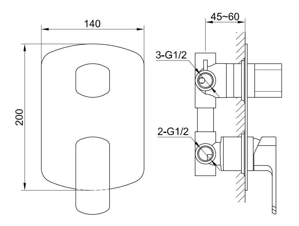 Kohlman FOXAL Podtynkowa bateria wannowo-prysznicowa z trzema wyjściami QW211F