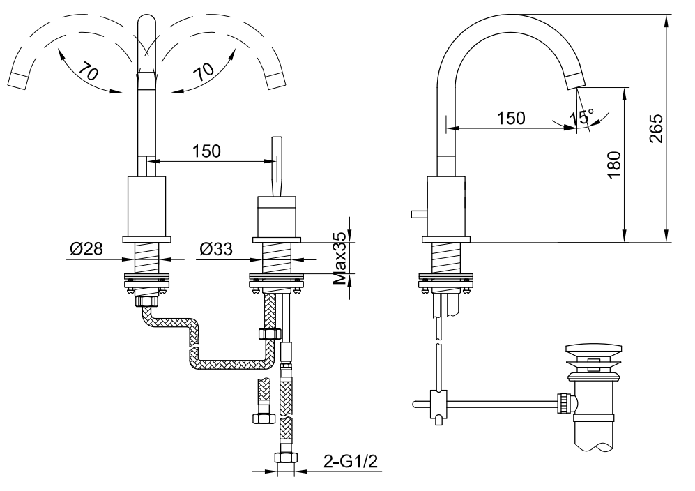 Kohlman MAXIMA 2-otworowa bateria umywalkowa z obrotową wylewką QB205M