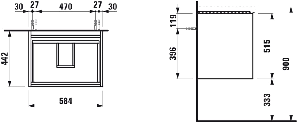 Laufen LANI szafka podumywalkowa 600, 2 szuflady, pasuje do umywalki LUA 810083, biały mat Wymiary (szer./gł./wys.): 585x440x515 mm. H4035321122601