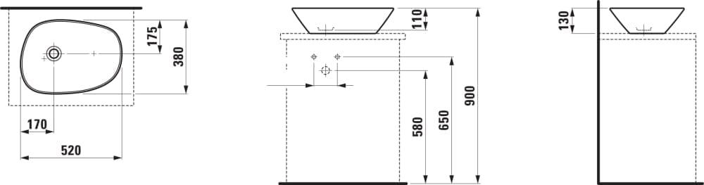 Laufen PALOMBA Umywalka nablatowa 52x38 cm, bez otworu na baterię. H8168020001121