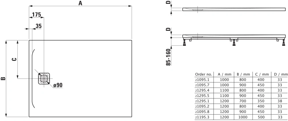 Brodzik Laufen PRO wykonany z materiału Marbond, delikatna struktura powierzchni, ultrapłaski, prostokątny, odpływ na krótkim boku, możliwość docinania z 3 stron
