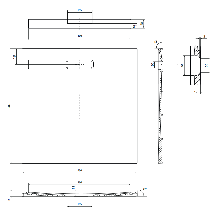 Brodzik kwadratowy KONTRA by Meissen Keramik 90x90