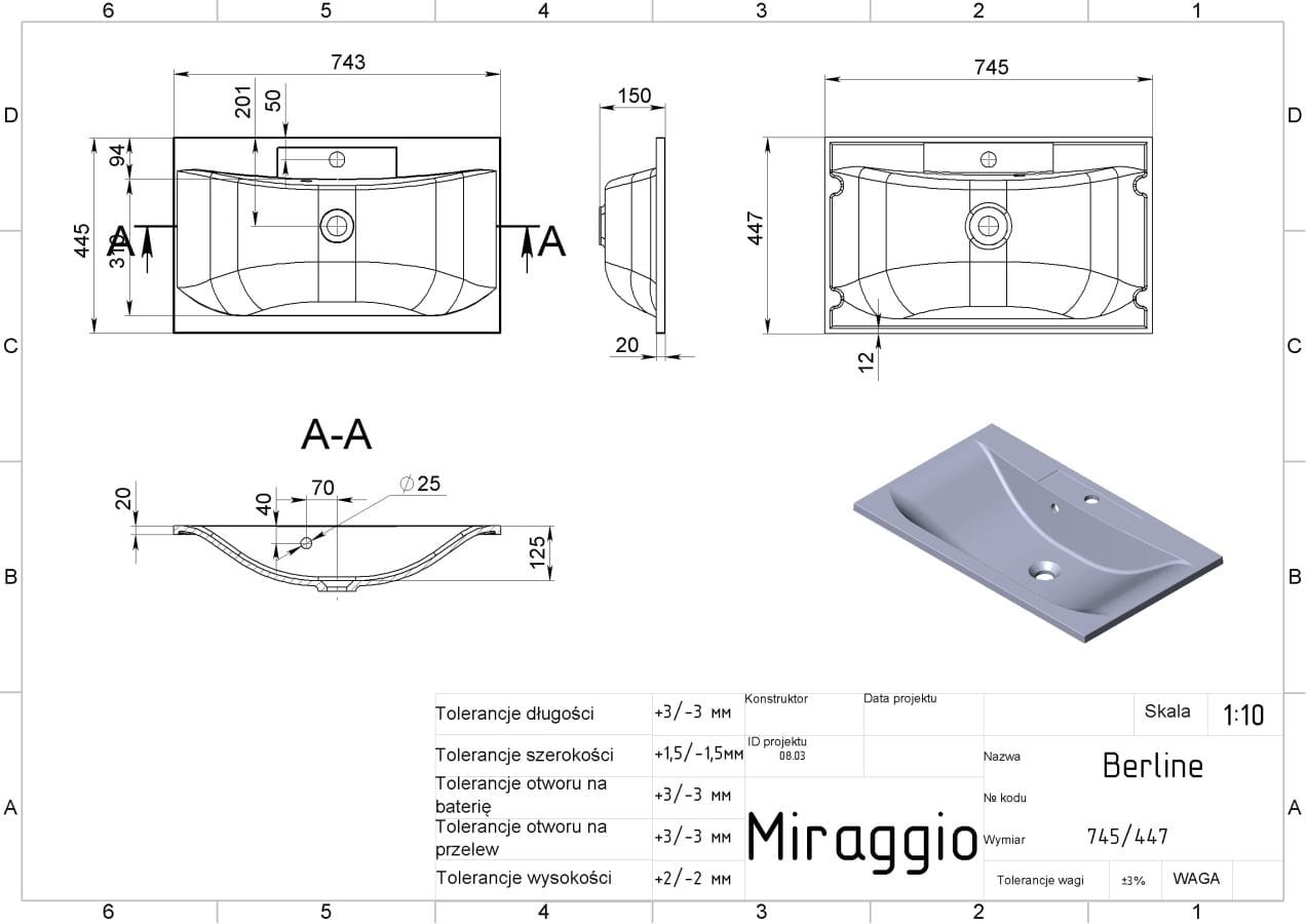 Dane techniczne Umywalka BERLIN