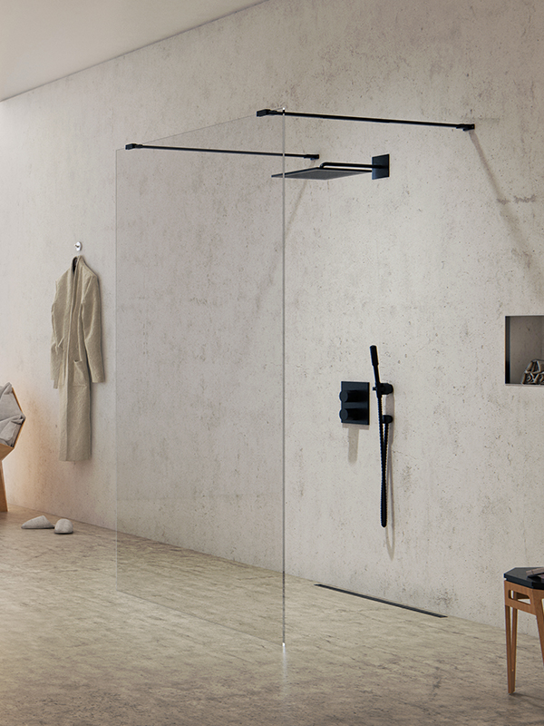New Trendy EXK-0084 Kabina prysznicowa NEW MODUS BLACK walk-in 110x200 szkło czyste 8 mm Active Shield