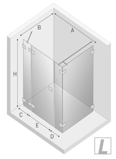 New Trendy EXK-0162 Kabina EVENTA PLUS L prostokątna drzwi uchylne pojedyncze 150x90x200 czyste 8mm Active Shield