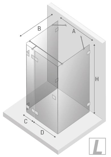 New Trendy EXK-0186 Kabina EVENTA L kwadratowa przyścienna drzwi uchylne pojedyncze 100x100x200 czyste 8mm Active Shield
