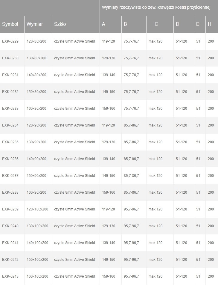 New Trendy EXK-0233 Kabina EVENTA walk-in 160x80x200 czyste 8mm Active Shield // EXK-0233