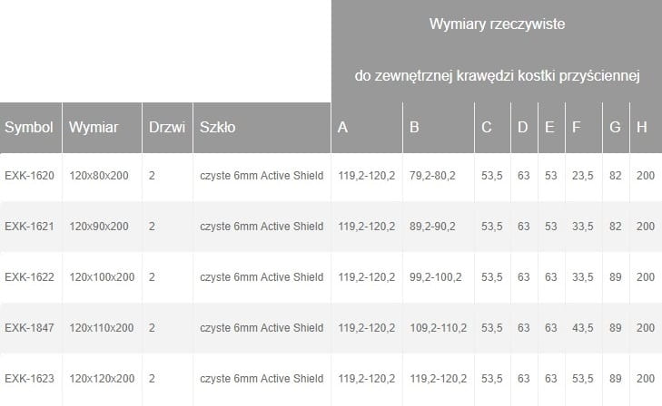 kabina kwadratowa i prostokątna,drzwi prysznicowe uchylne podwójne otwierane na zewnątrz, bezpieczne hartowane szkło 6 mm pokryte powłoką ochronną Active Shield
