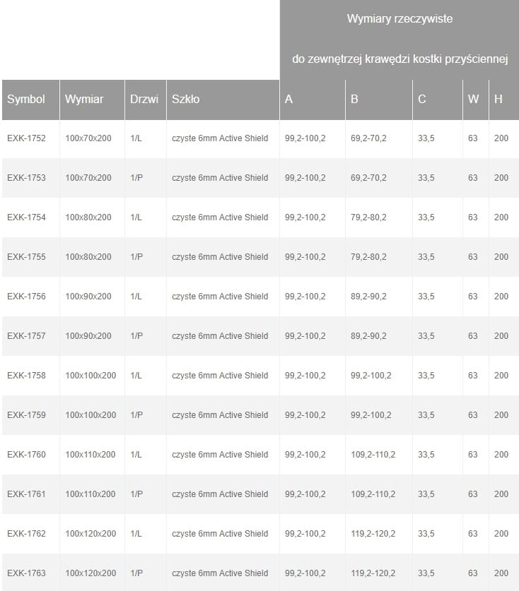 kabina kwadratowa i prostokątna,drzwi prysznicowe uchylne pojedyncze otwierane na zewnątrz, bezpieczne hartowane szkło 6 mm pokryte powłoką ochronną Active Shield