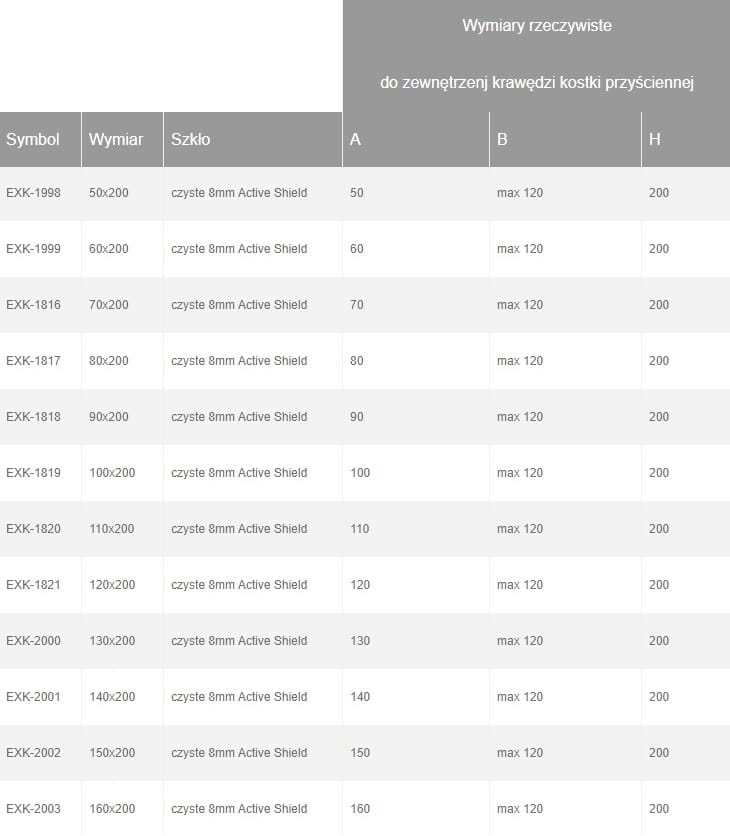 kabina typu walk-in, bezpieczne hartowane szkło 8mm pokryte powłoką ochronną Active Shield