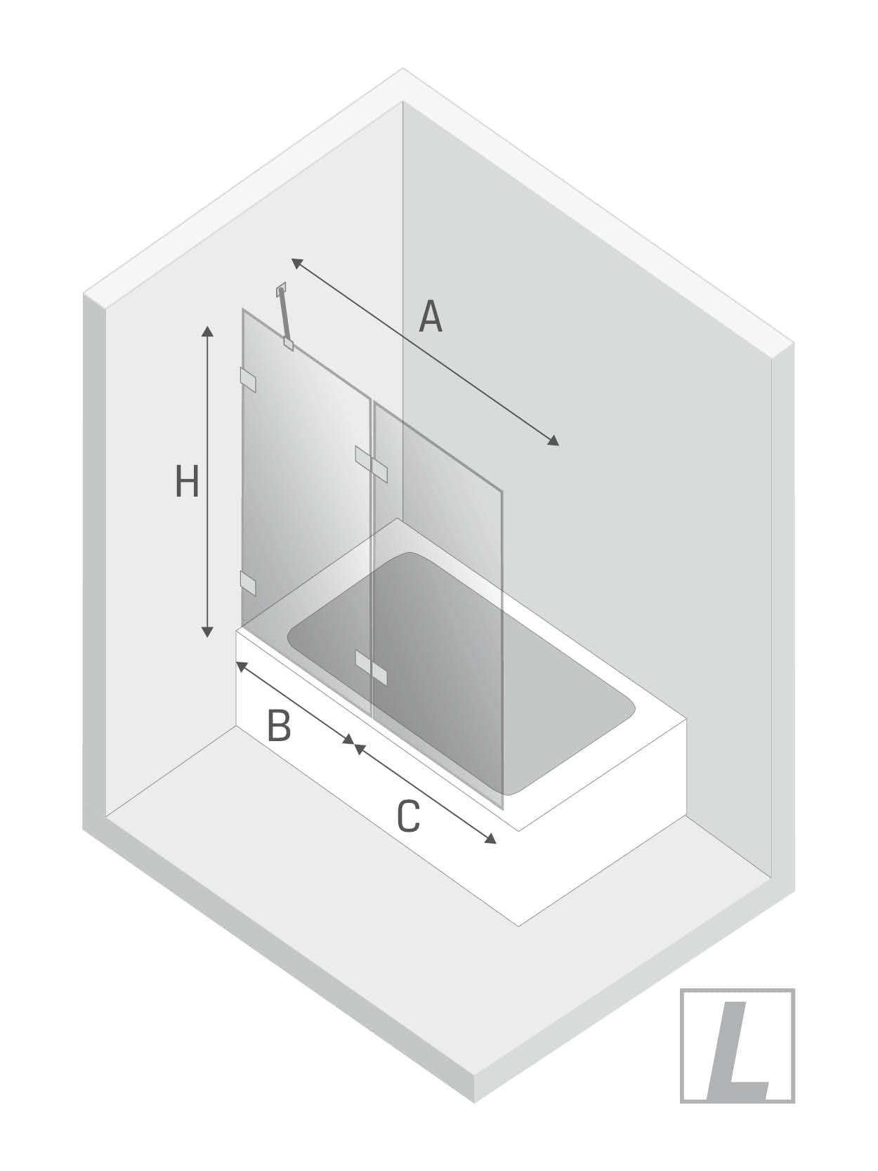 Parawan kąpielowy 2-elementowy, bezpieczne hartowane szkło 6 mm pokryte powłoką ochronną Active Shield.