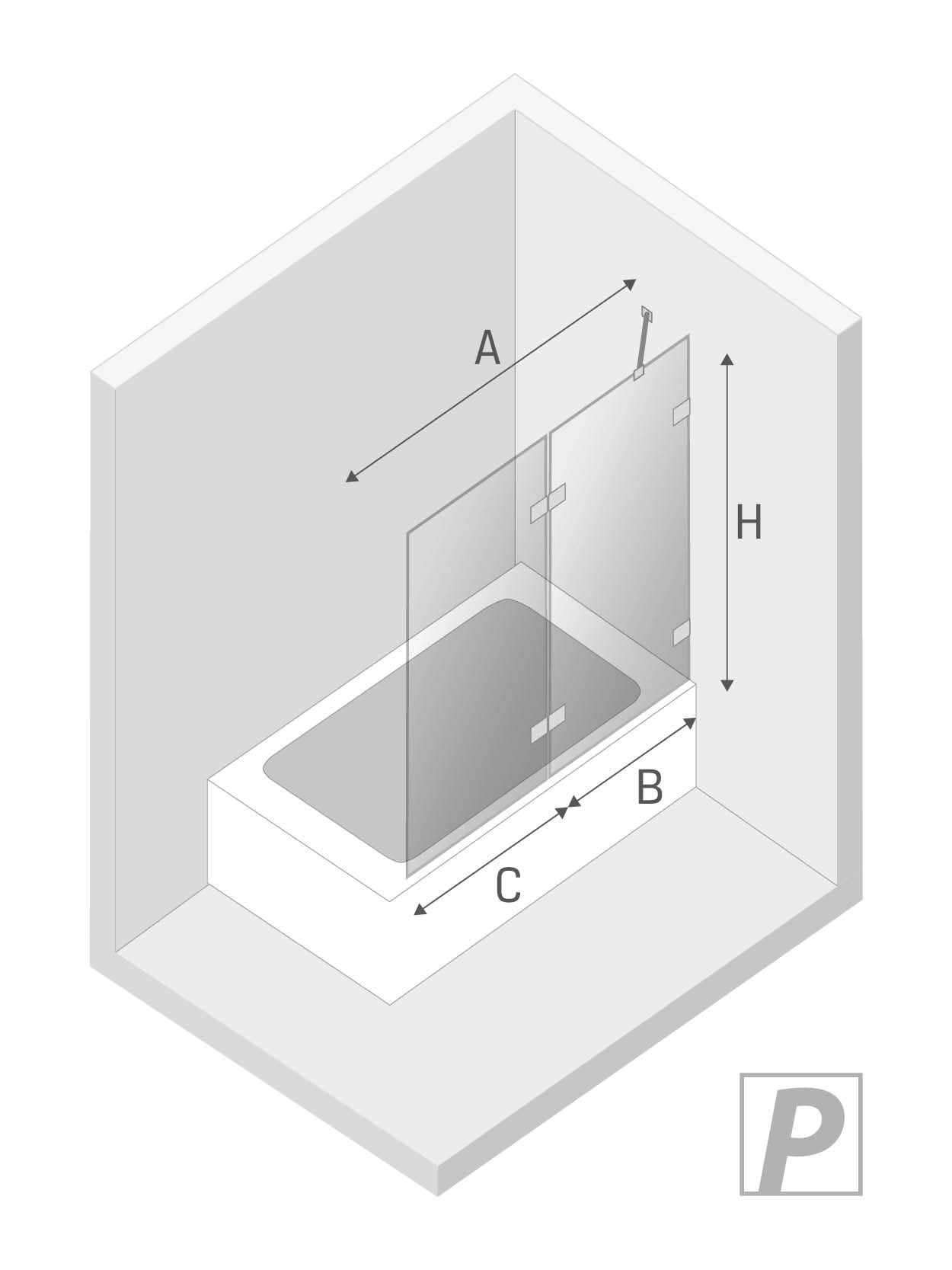 Parawan kąpielowy 2-elementowy, bezpieczne hartowane szkło 6 mm pokryte powłoką ochronną Active Shield.