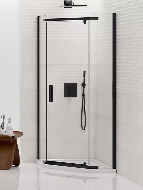 New Trendy K-0810 Kabina prysznicowa NEW KOMFORT BLACK pięciokątna, asymetryczna