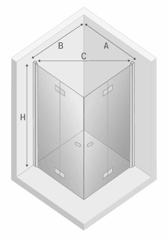 Kabina prysznicowa z podwójnymi drzwiami składanymi, uchylnymi otwieranymi na zewnątrz i do wewnątrz. Zawias kolumnowy zastosowany w drzwiach NEW SOLEO zapewnia niezwykle szerokie wejście.
