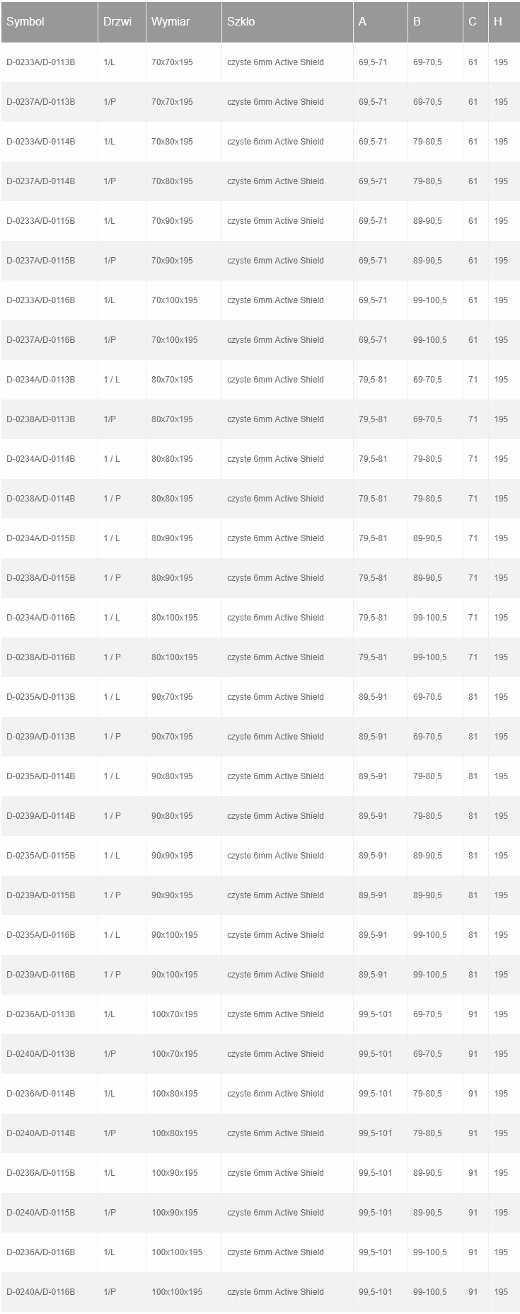 skrzydła drzwi prysznicowych, kabin walk in oraz parawanów otwierają się na zewnątrz i do wewnątrz w zakresie 180 stopni na zawiasach, które mają formę kolumny, tworząc szerokie i wygodne wejście.