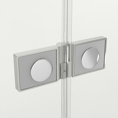 Kabina prysznicowa z pojedynczymi drzwiami składanymi, uchylnymi otwieranymi na zewnątrz i do wewnątrz. Zawias kolumnowy zastosowany w drzwiach NEW SOLEO zapewnia niezwykle szerokie wejście.