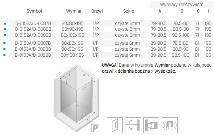New Trendy NEW SOLEO D-0153A/D-0089B Kabina prysznicowa 90x100/195 cm PRAWA