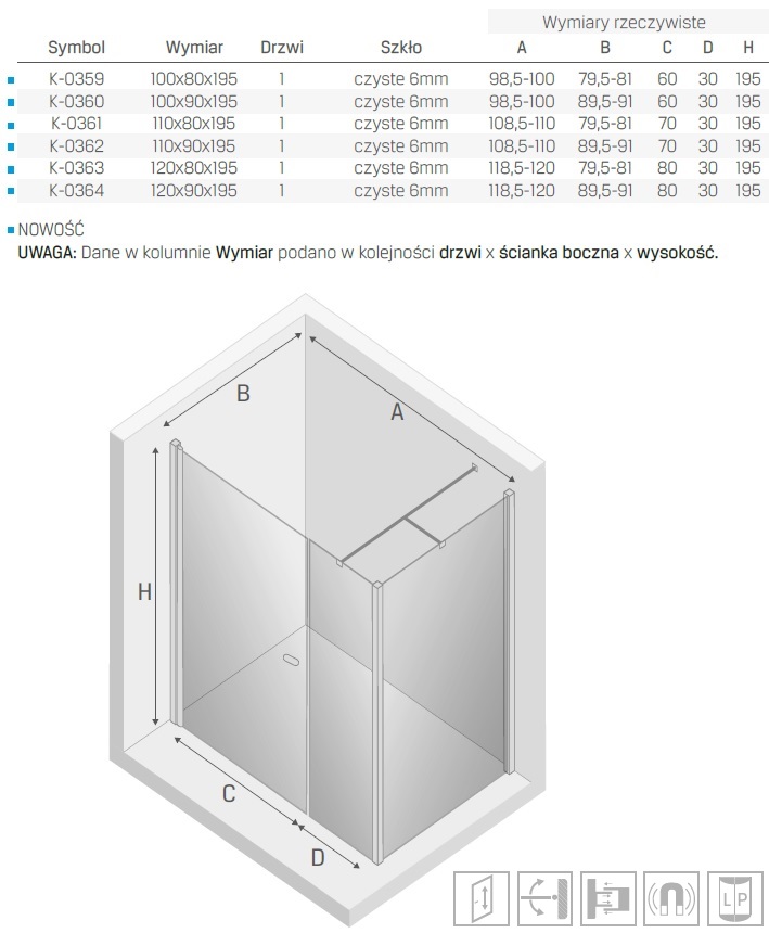 New Trendy NEW SOLEO K-0361 Kabina prysznicowa 110x80/195 cm