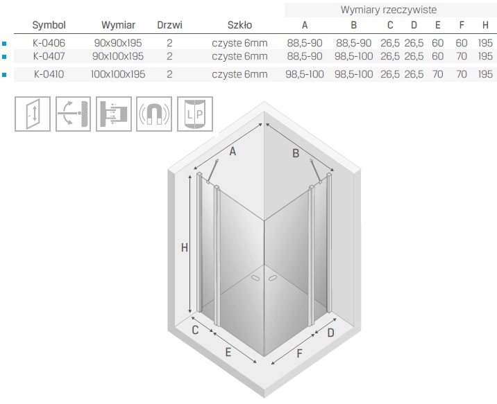 New Trendy NEW SOLEO K-0407 Kabina prysznicowa 90x100/195 cm