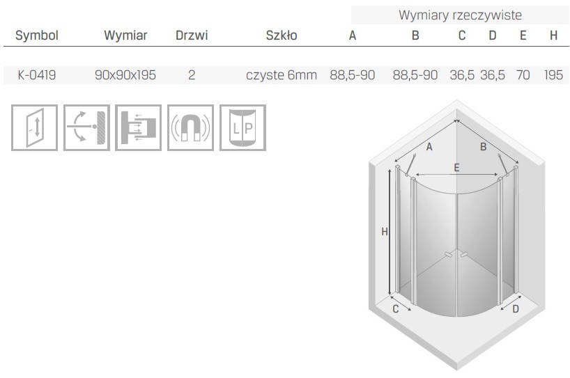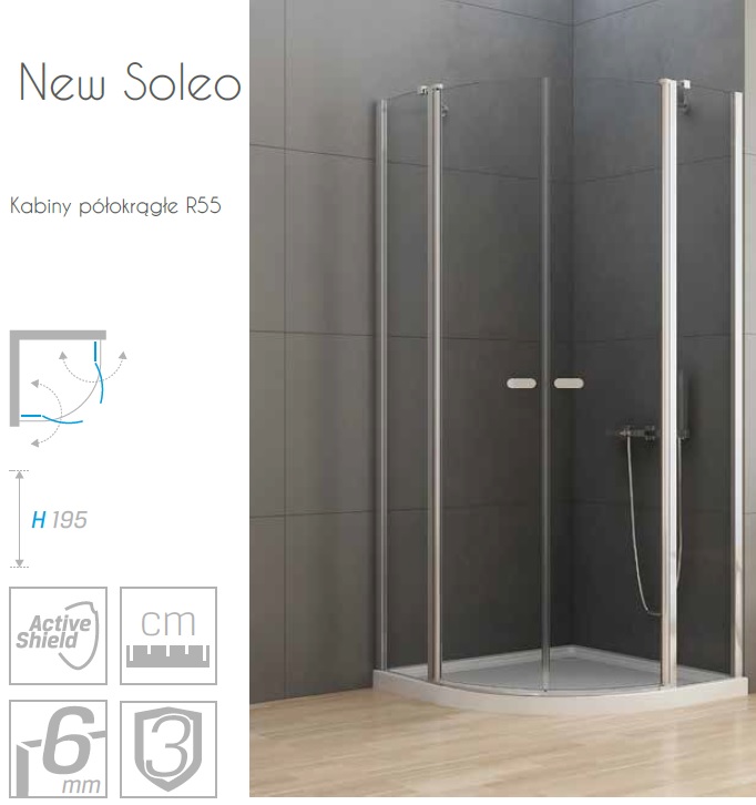New Trendy NEW SOLEO K-0419 Kabina półokrągła R55 90x90 cm