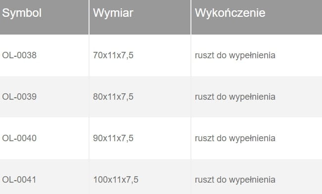 -ruszt polerowany lub do wypełnienia