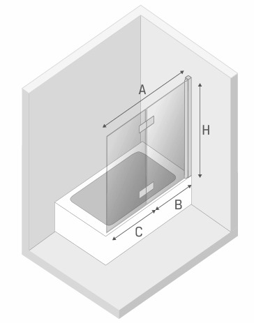 Parawan nawannowy łamany. Dzięki zawiasowi uchylnemu na zewnątrz i do wewnątrz można złożyć go do ściany aby nie przeszkadzał podczas kąpieli w wannie.