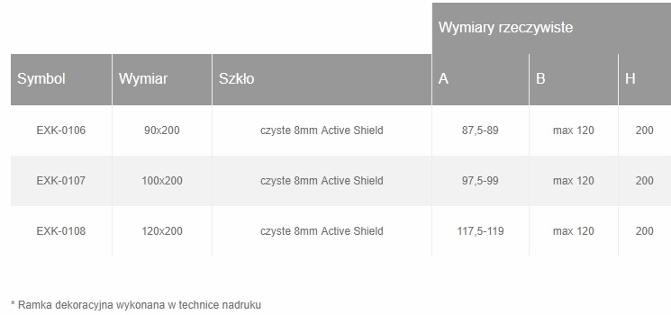New Trendy Ścianka szklana NEW MODUS BLACK walk-in 120x200 szkło czyste Active shield- wzór ramka // EXK-0108