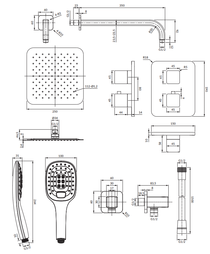 OMNIRES SLIDE termostatyczny system prysznicowy podtynkowy chrom. SYSSL11CR