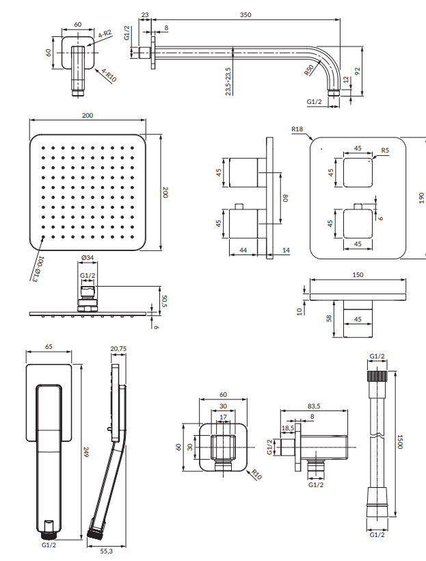 - przyłącze kątowe mosiężne (8815GR), z uchwytem na rączkę prysznicową