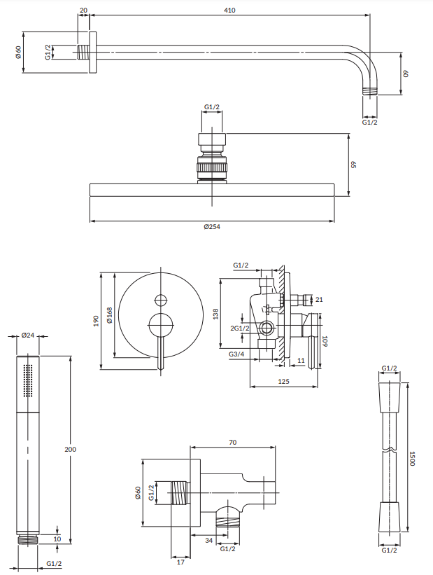 Bateria, deszczownica oraz rączka prysznicowa zostały wykonane z wysokogatunkowego mosiądzu klasy A.