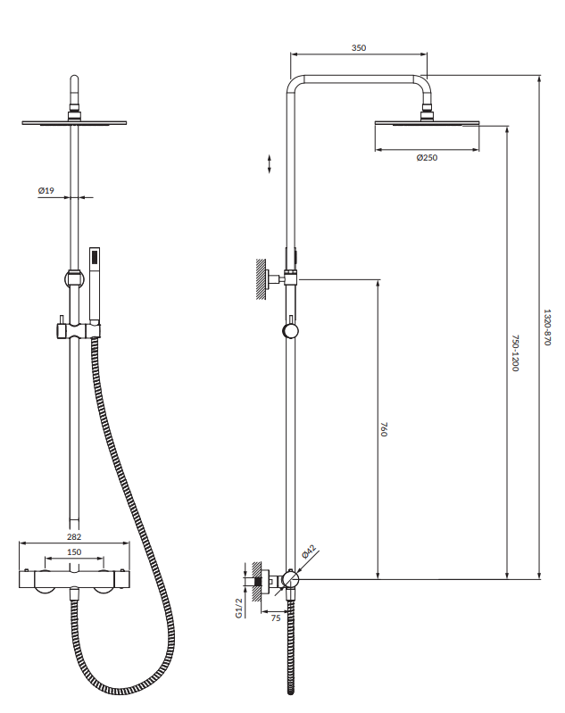 Termostatyczny system prysznicowy natynkowy