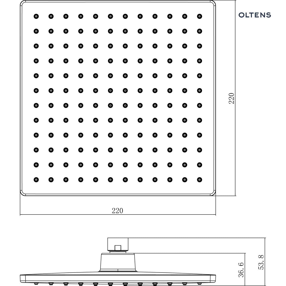 - deszczownica kwadratowa z ABS, o wymiarach 220 x 220 mm z regulacją kąta