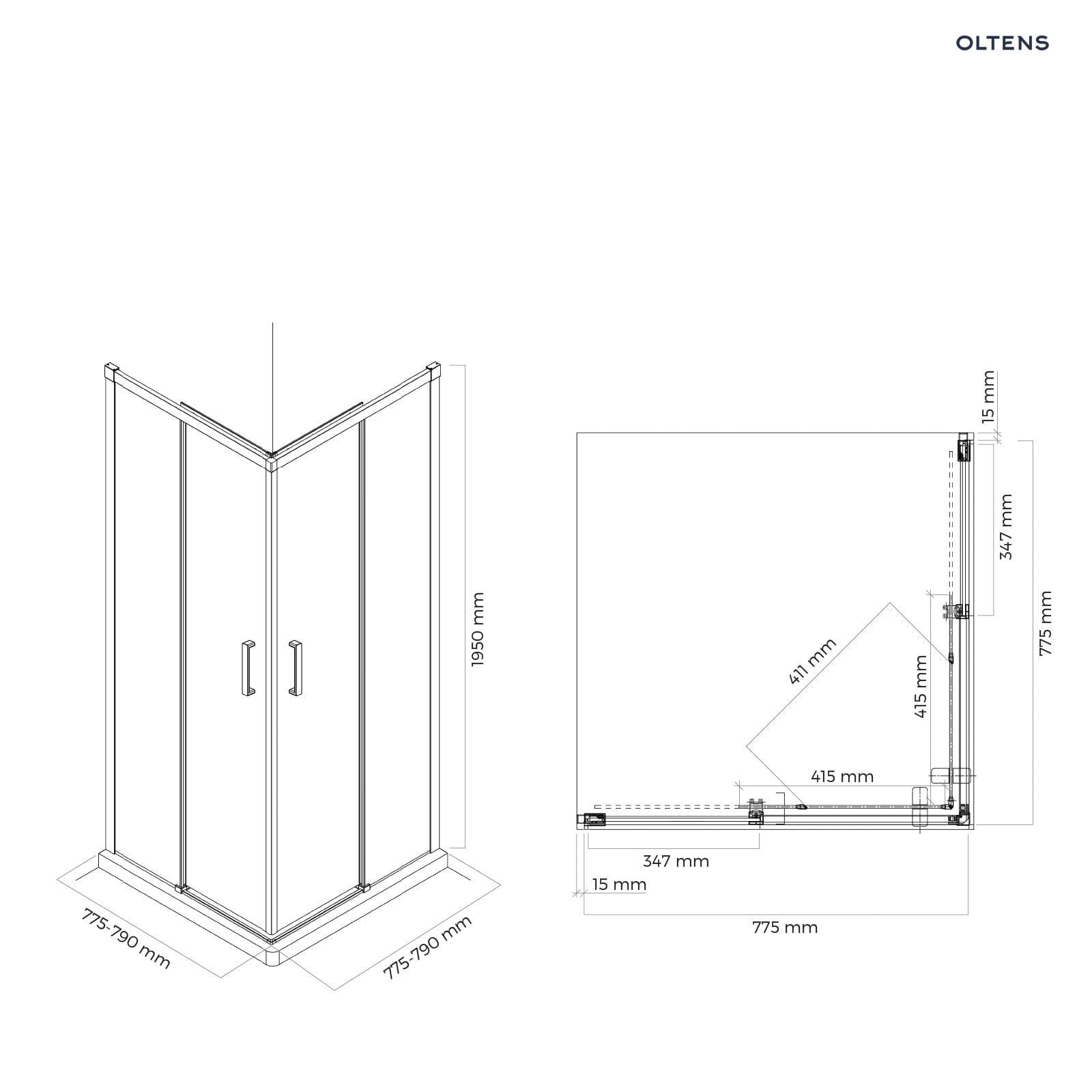 Oltens Breda kabina prysznicowa 80x80 cm kwadratowa czarny mat/szkło 20005300
