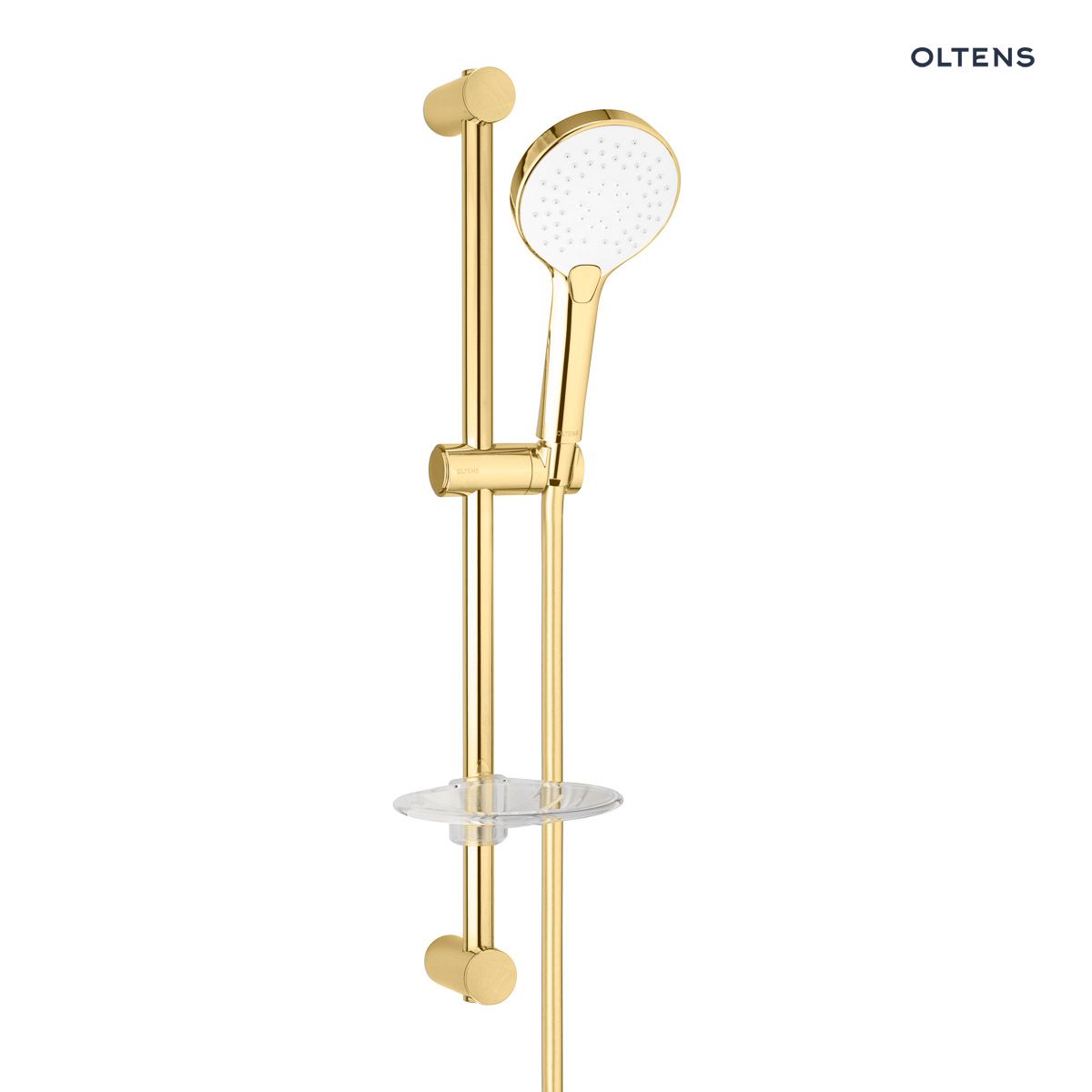 Oltens Driva EasyClick Alling 60 zestaw prysznicowy z mydelniczką złoty połysk/biały 36004080