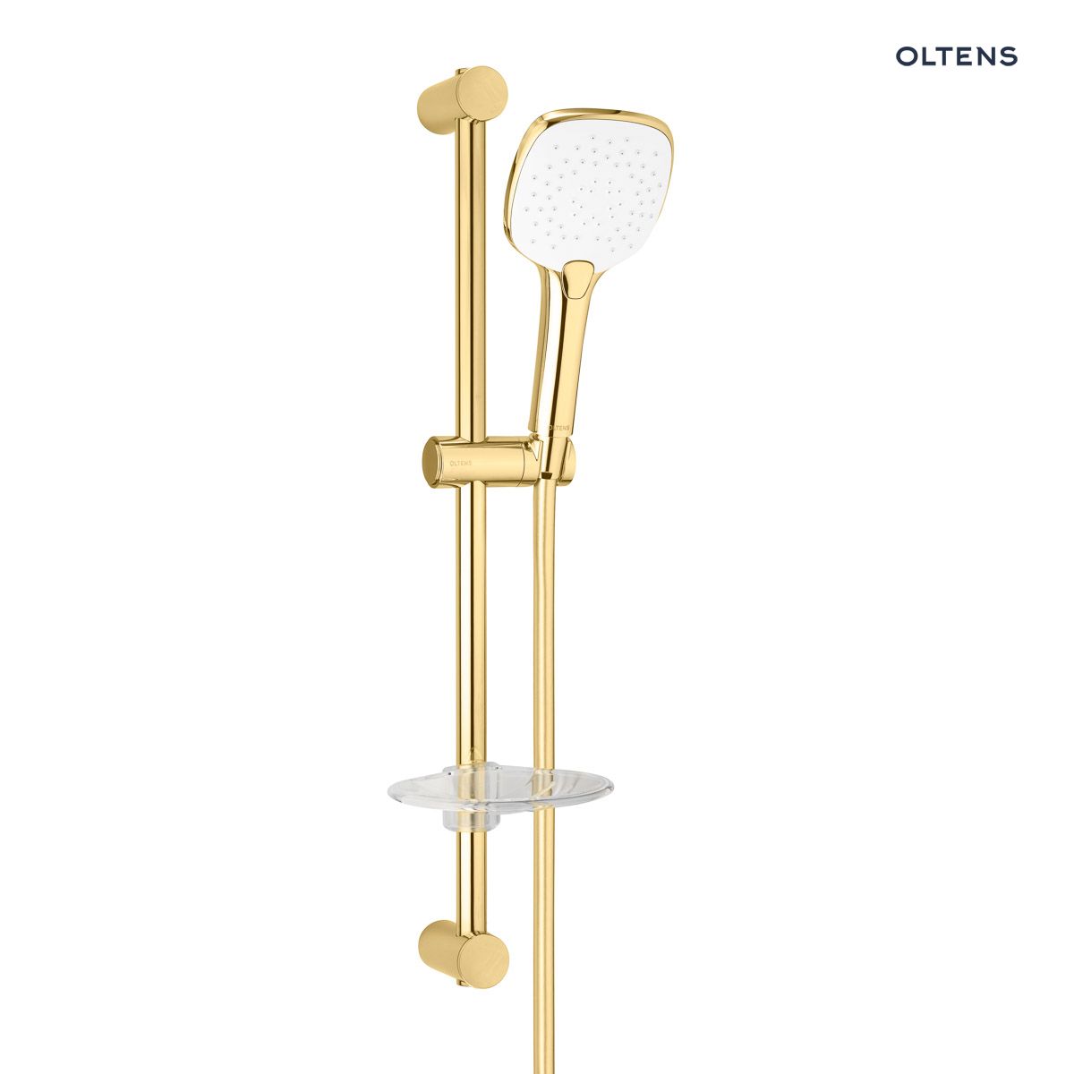 Oltens Driva EasyClick (S) Alling 60 zestaw prysznicowy z mydelniczką złoty połysk/biały 36005080