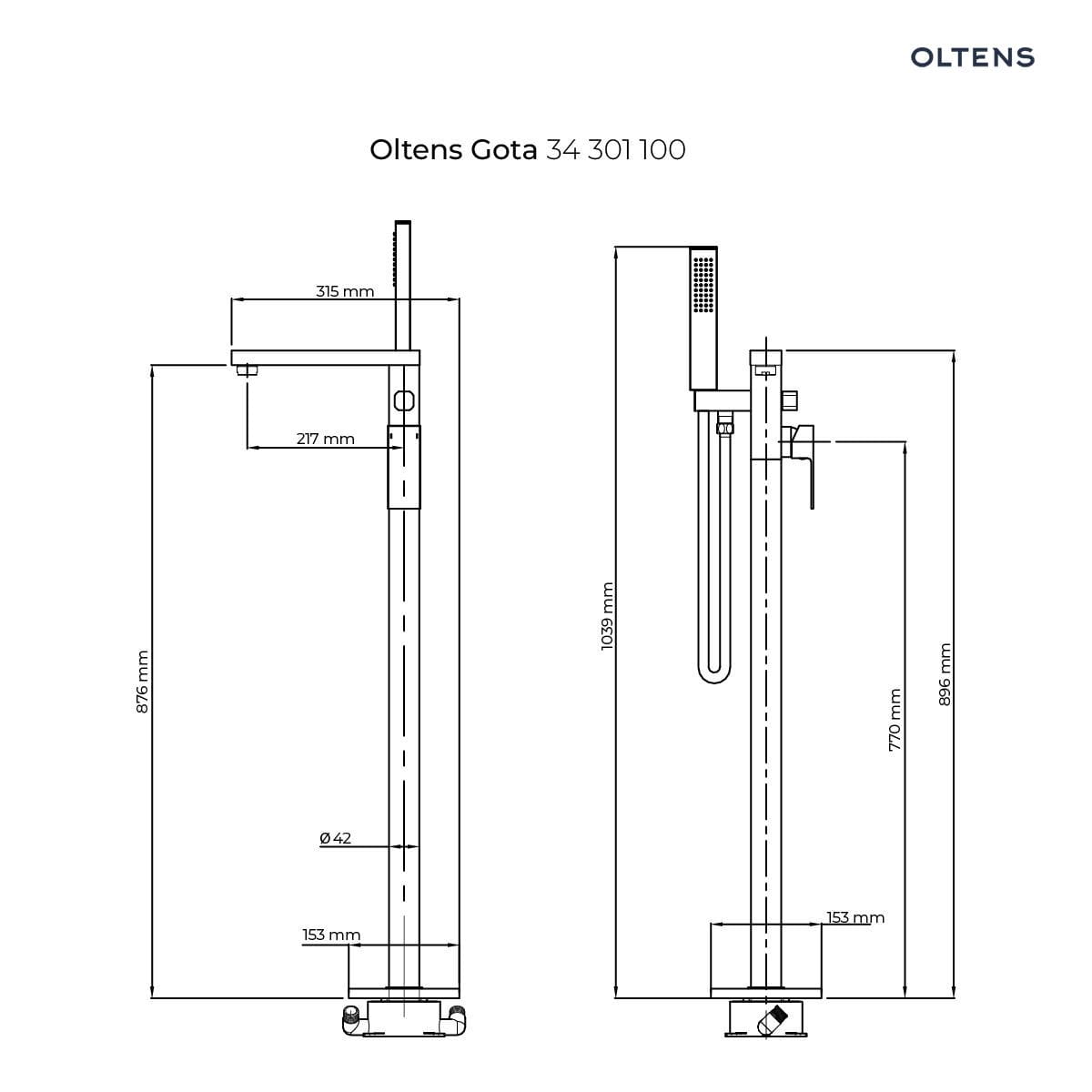Oltens Gota bateria wannowo-prysznicowa kompletna wolnostojąca chrom 34301100