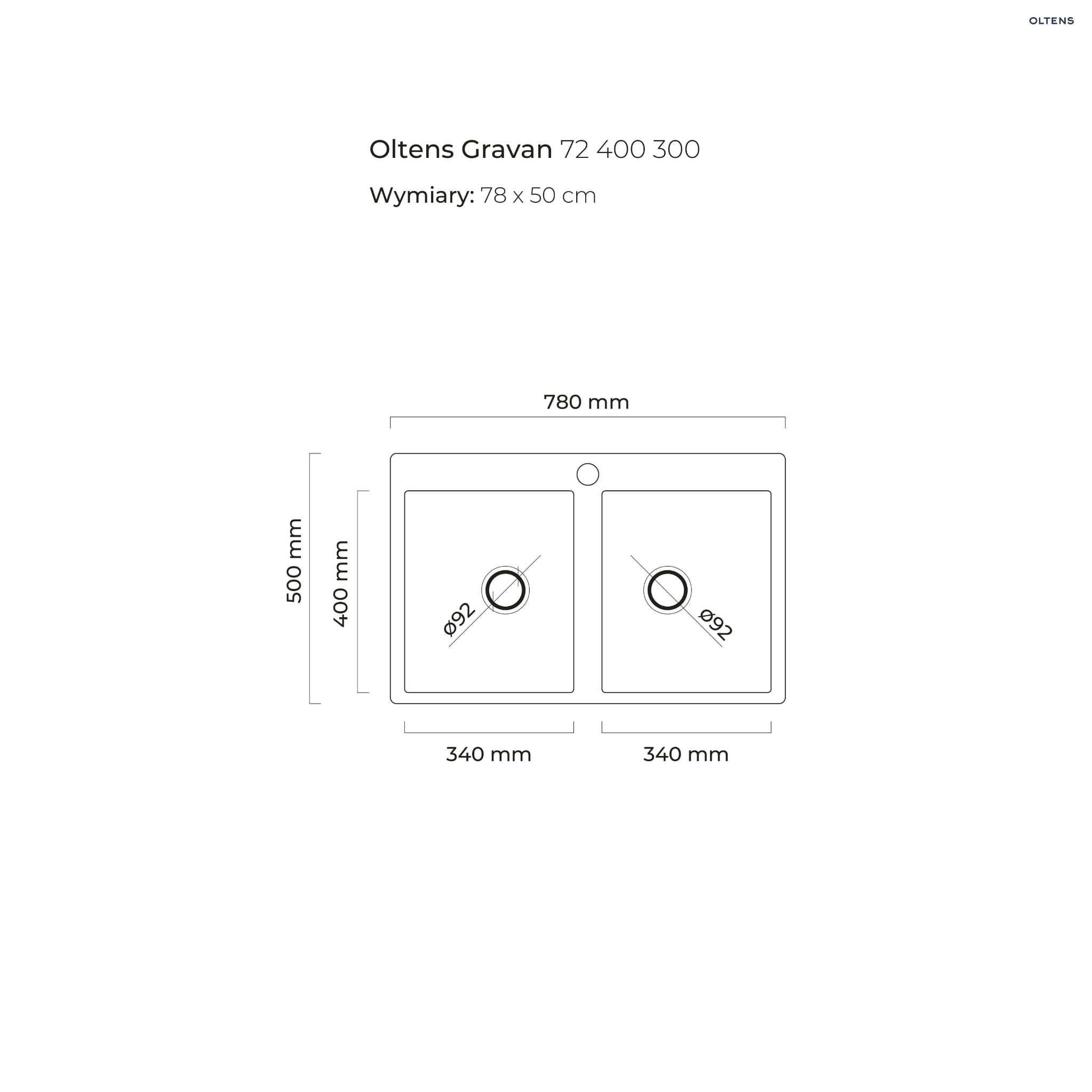Producent OltensOltens Gravan zlewozmywak granitowy 1-komorowy z krótkim ociekaczem 79x50 cm czarny mat 72100300