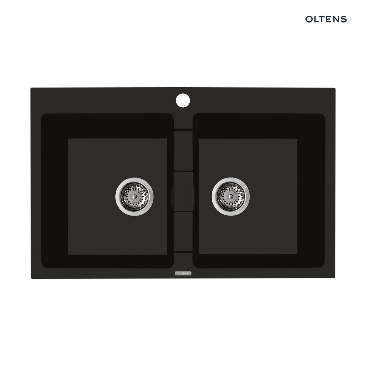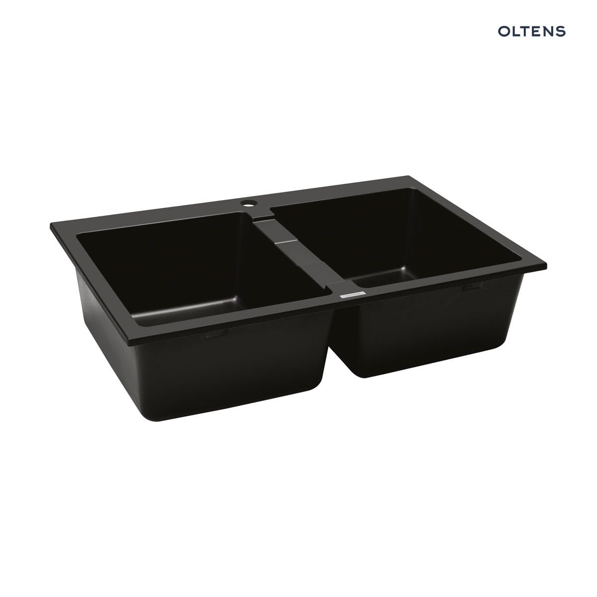 Oltens Gravan zlewozmywak granitowy 2-komorowy 78x50 cm czarny mat 72400300