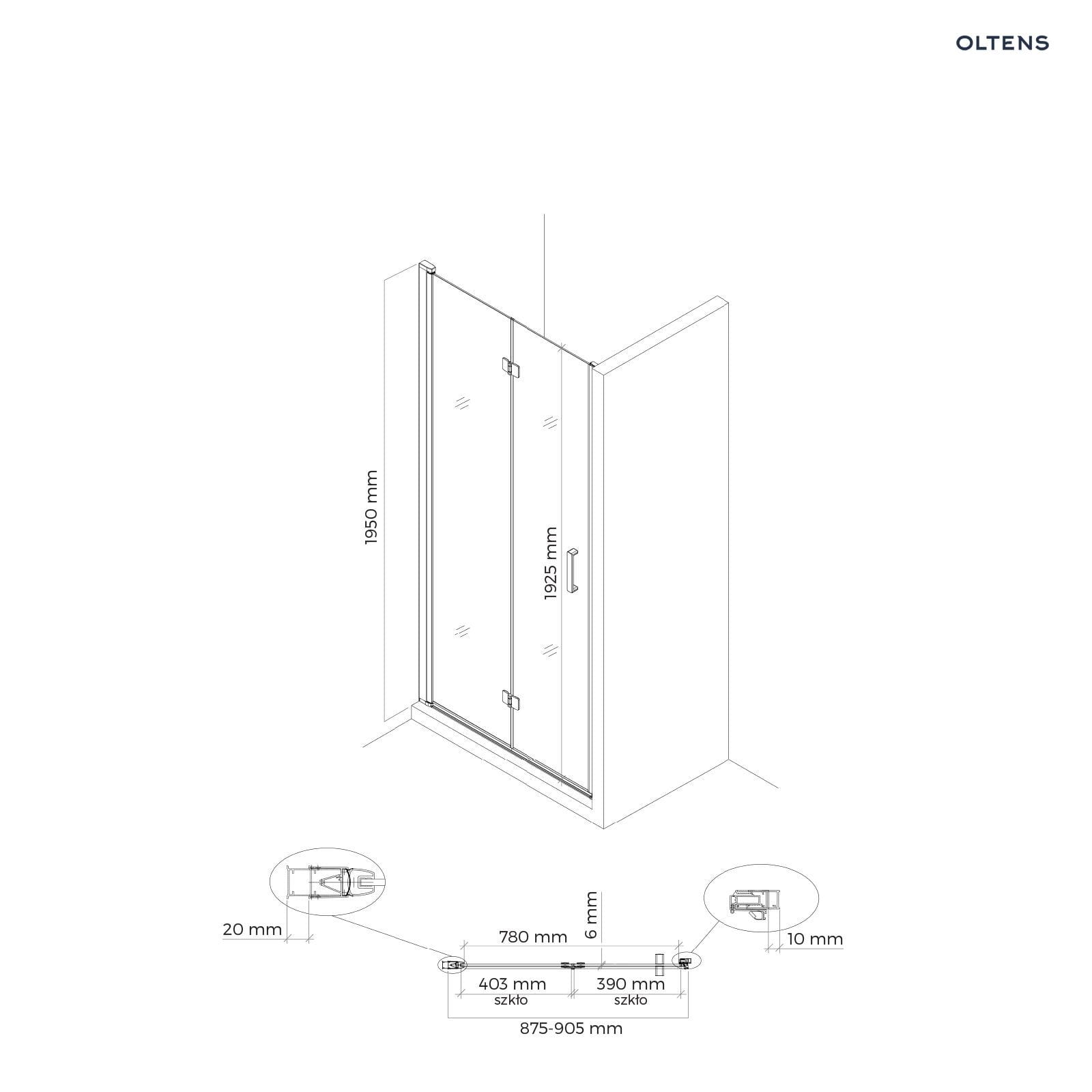 Oltens Hallan drzwi prysznicowe 90 cm wnękowe czarny mat/szkło przezroczyste 21201300