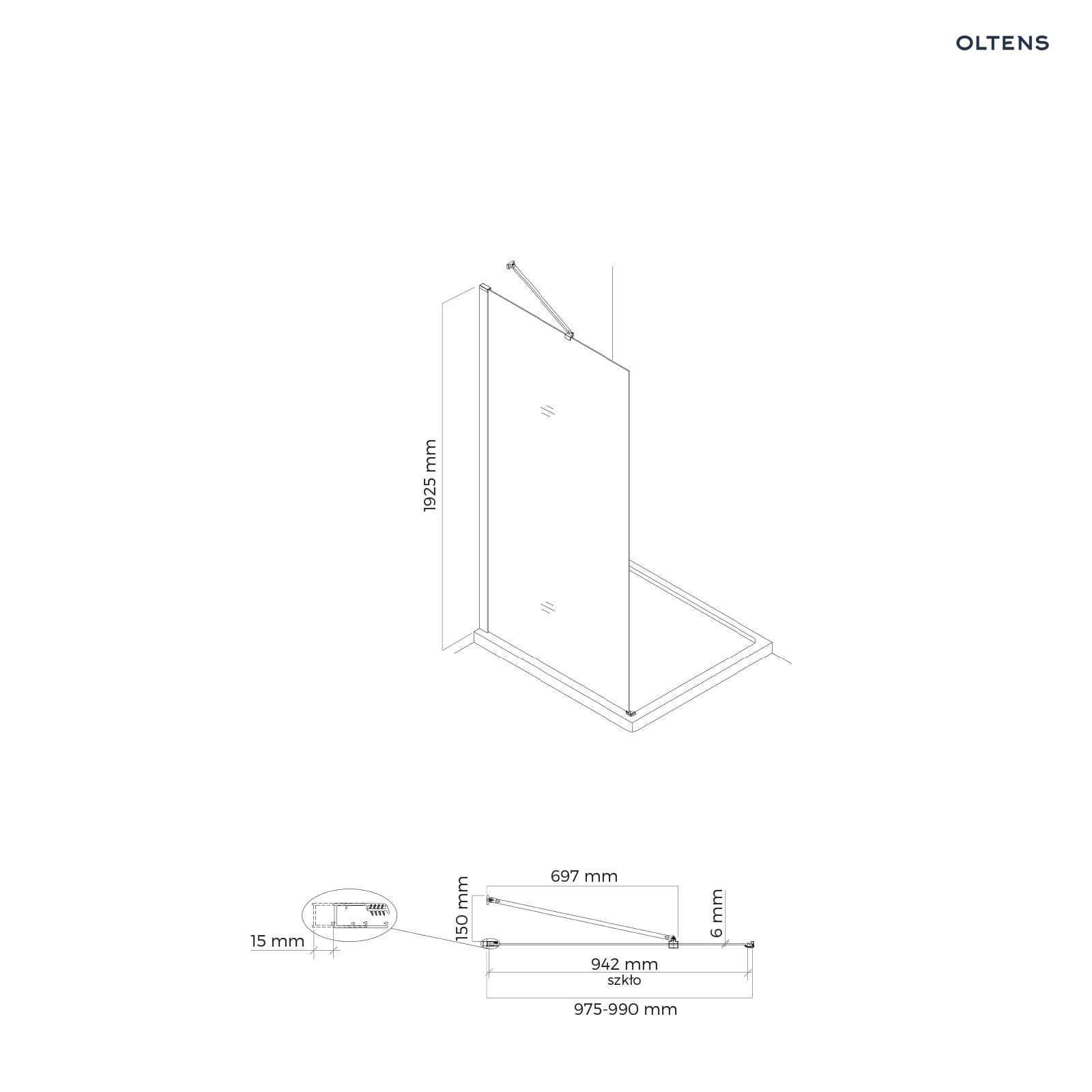 Oltens Hallan ścianka prysznicowa 100 cm boczna do drzwi czarny mat/szkło przezroczyste 22102300