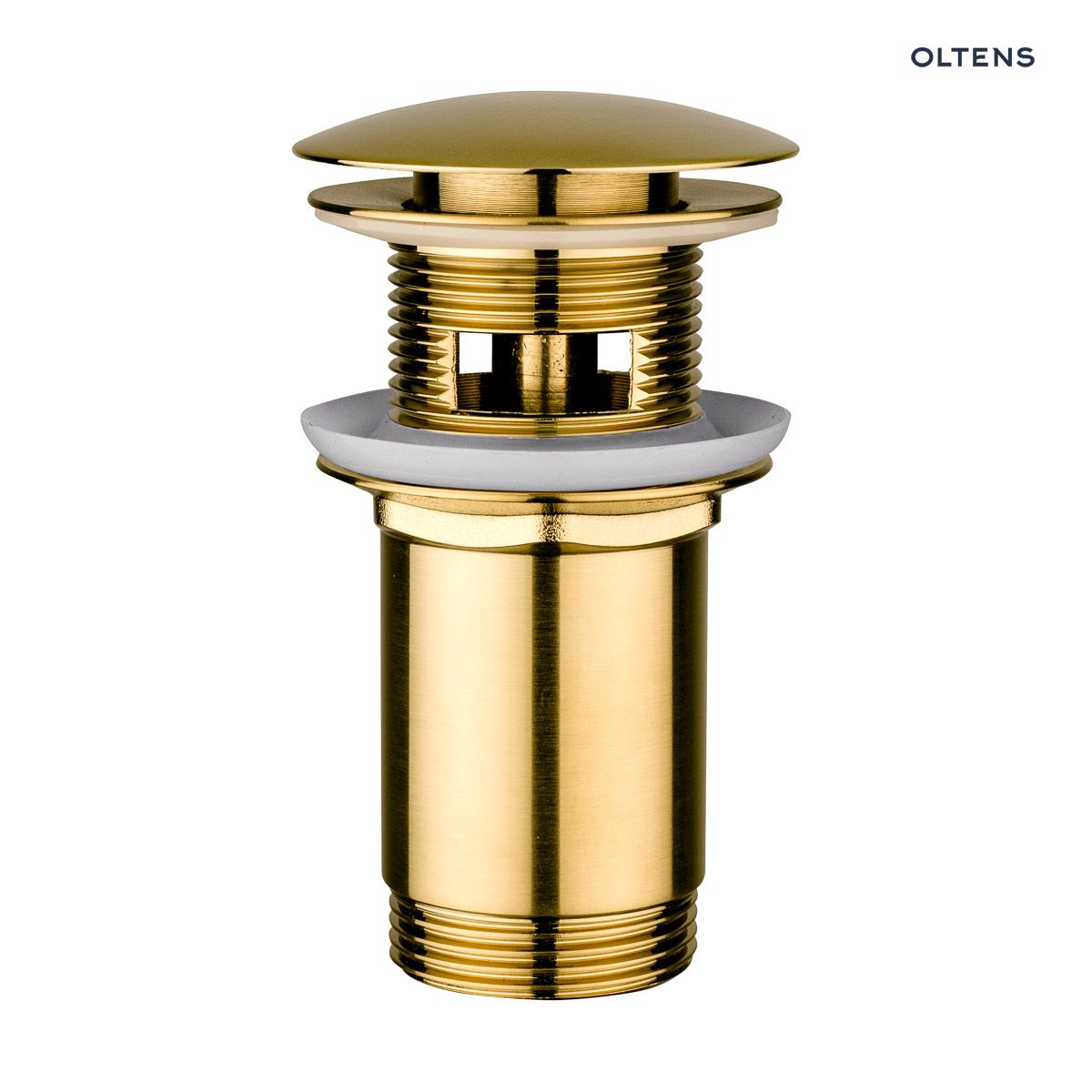 Oltens Halsa korek umywalkowy klik klak z przelewem G1 1/4 złoto szczotkowane 05100810