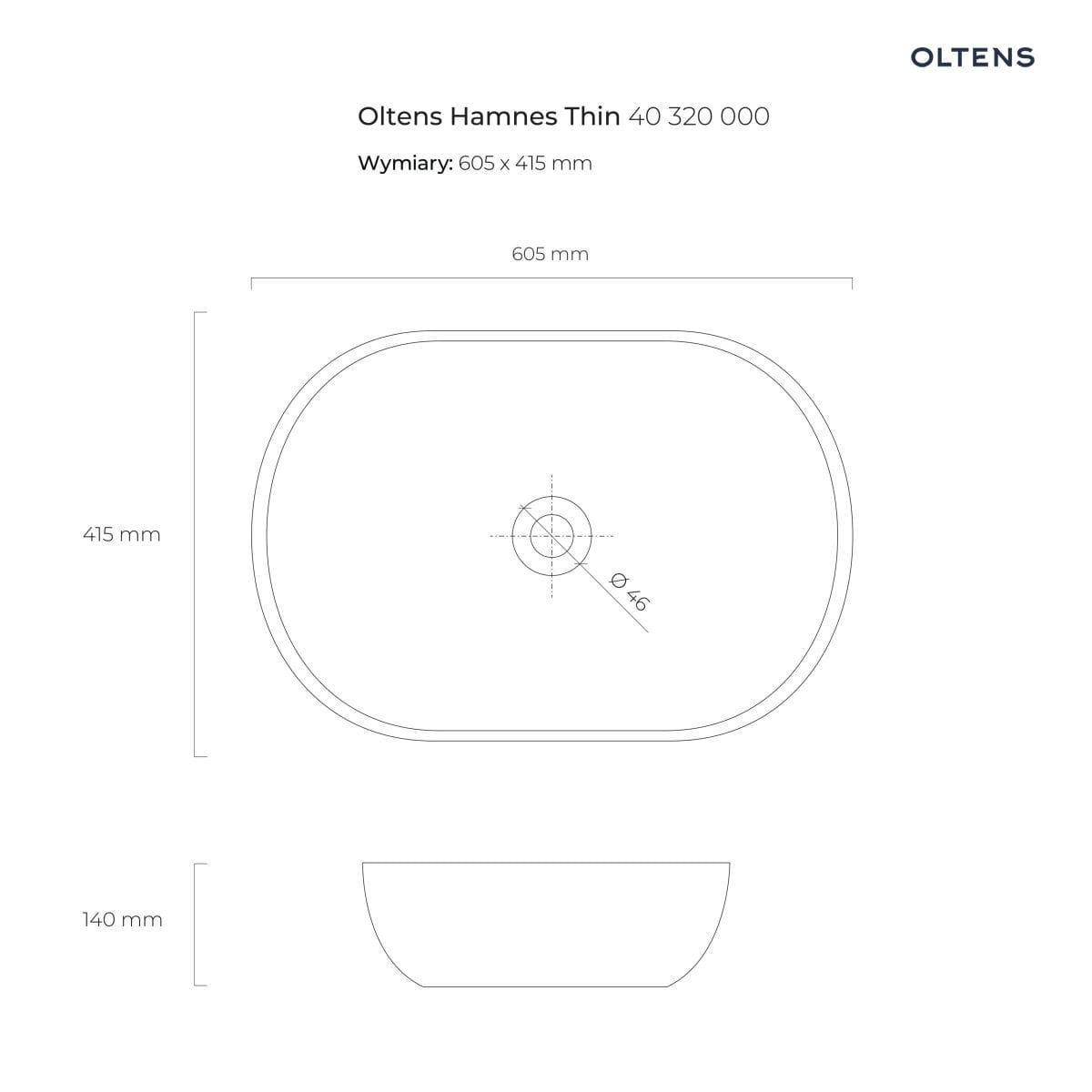 Producent OltensOltens Hamnes Thin umywalka 60,5x41,5 cm nablatowa owalna z powłoką SmartClean biała 40820000