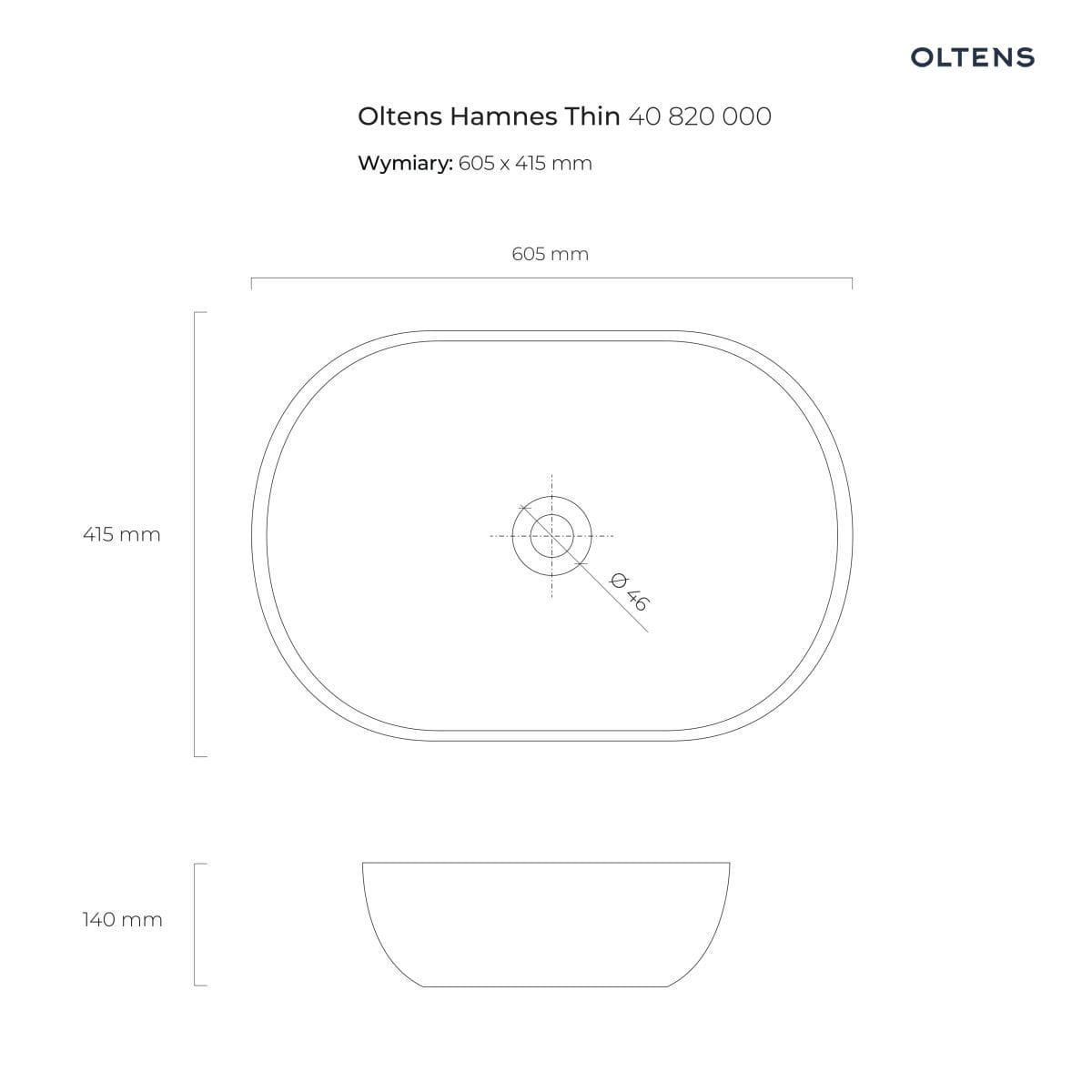Producent OltensOltens Hamnes Thin umywalka 62x42 cm nablatowa owalna z powłoką SmartClean biała 41814000