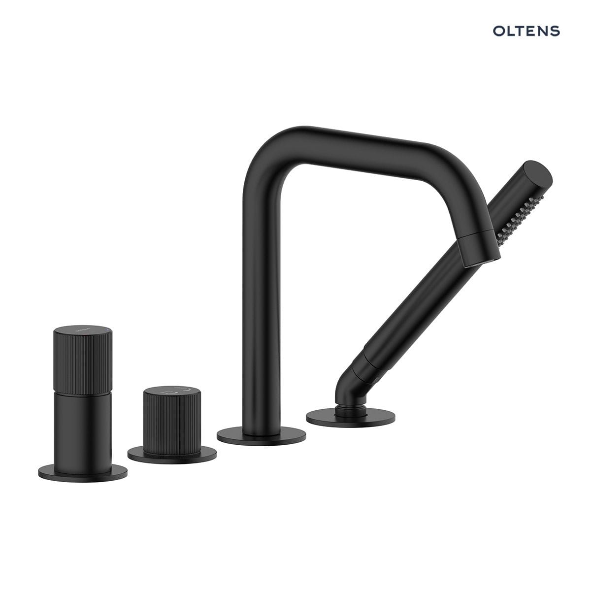 Oltens Hamnes bateria wannowo-prysznicowa 4-otworowa kompletna czarny mat 34202300