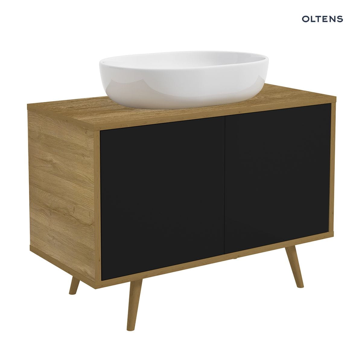 Oltens Hedvig szafka 95 cm podumywalkowa wisząca z półką czarny mat/dąb naturalny 60204360