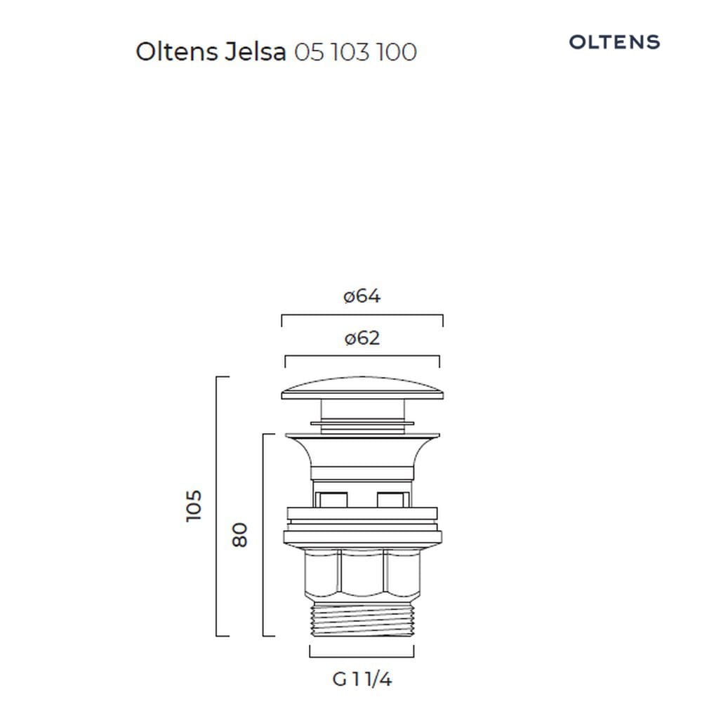 Oltens Jelsa korek do umywalki klik klak okrągły z przelewem G 1 1/4 chrom 05103100