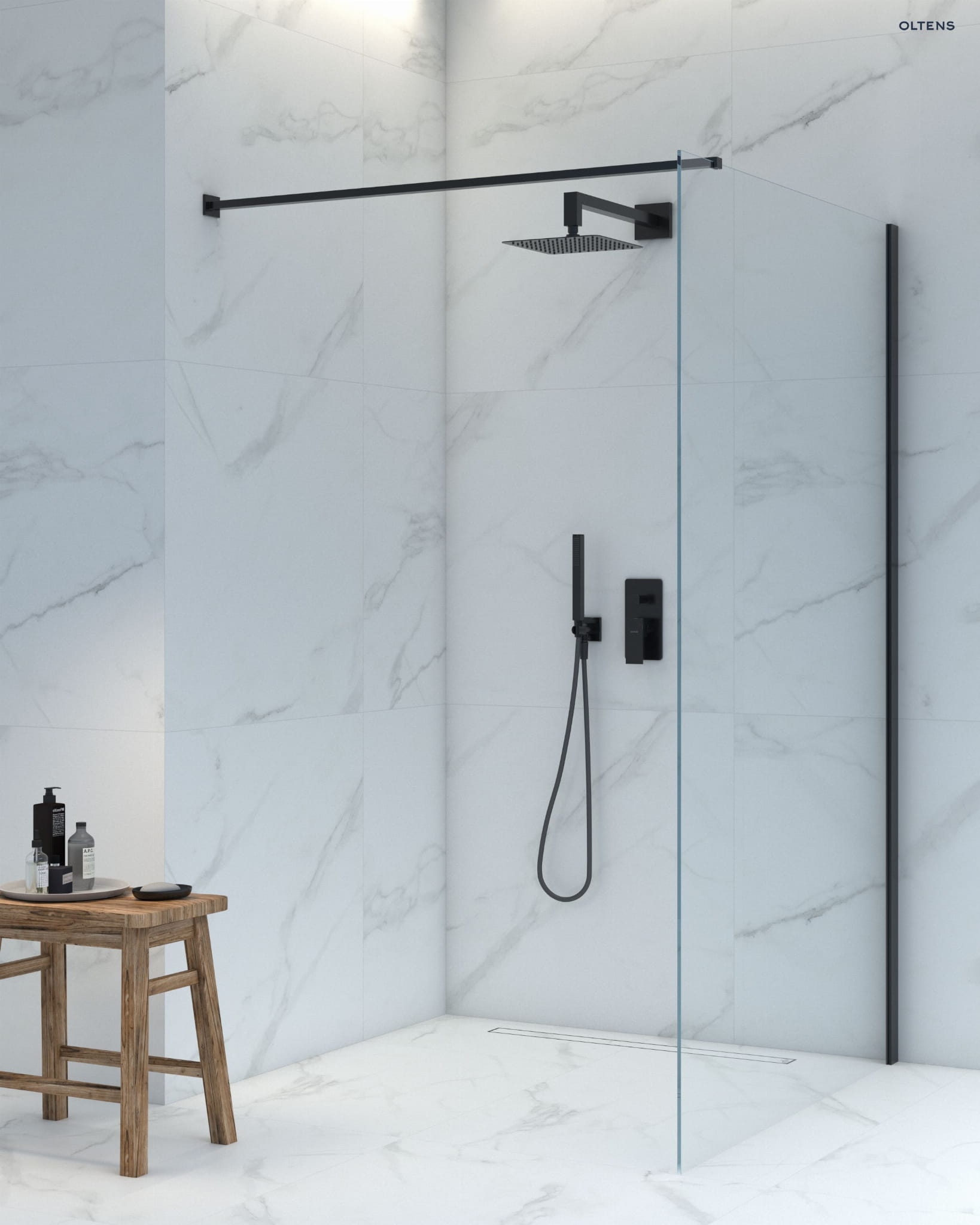 Producent OltensZestaw Oltens Molle bateria podtynkowa z deszczownicą 30 cm Vindel i kompletem prysznicowym Ume czarny mat 36600300